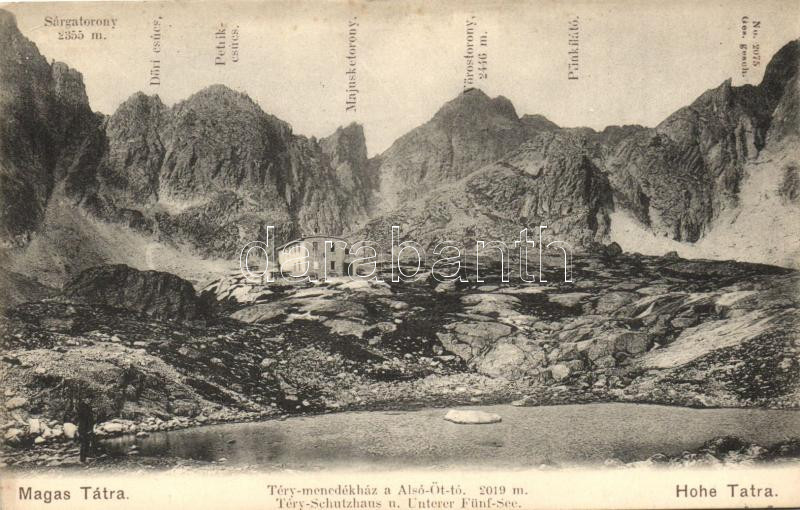 Tátra, Téry menedékház, Alsó-Öt-tó / rest house, lake https://www.darabanth.com/hu/262-Gyorsarveres/262.0/Kepeslapok/Felvidek~100026/Tatra-Tery-menedekhaz-Also-Ot-to-rest-house-lake~II1304377