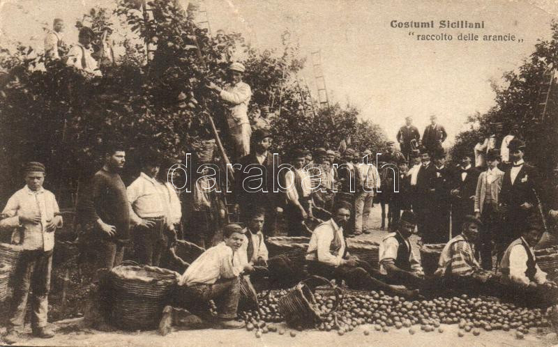 Leírás: Costumi Siciliani, raccolto delle arancie / Sicilian folklore, orange harvest (EK)