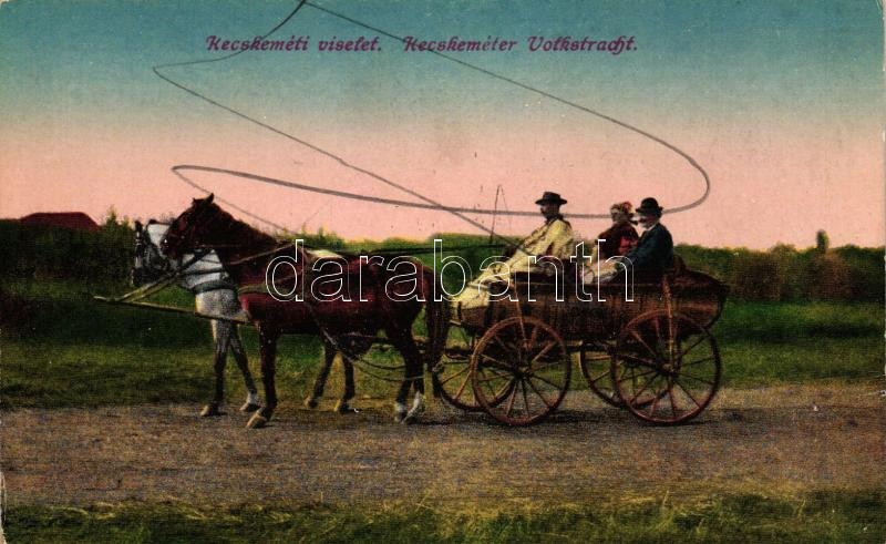 Kecskeméti viselet, lovas szekér / Hungarian folklore, horse cart https://www.darabanth.com/hu/262-Gyorsarveres/262.0/Kepeslapok/Folklor~100073/Kecskemeti-viselet-lovas-szeker-Hungarian-folklore-horse-cart~II1301294