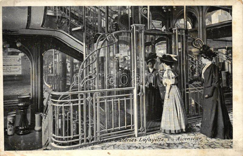 Paris, Les Galeries Lafayette, Un Ancenseur / shop interior, elevator ... https://www.darabanth.com/hu/262-Gyorsarveres/262.0/Kepeslapok/Hires-Ember~100078/Paris-Les-Galeries-Lafayette-Un-Ancenseur-shop-interior-elevator-EK~II1301151