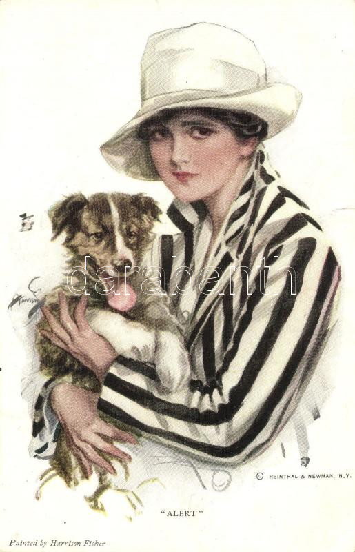 Leírás: 'Alert' / Lady with dog, Reinthal & Newman Series No. 763 s: Harrison Fisher (fa)