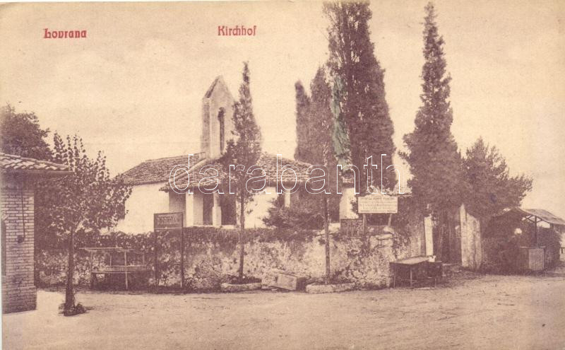 Leírás: Lovran, Lovrana; Temlom tér, B. Prodan / Kirchhof / church square
