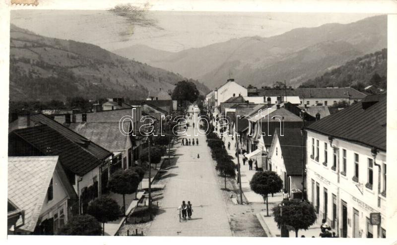 Rahó, Rakhiv; Fő út, üzletek / main street, shops, photo (kis szakadás... https://www.darabanth.com/hu/262-Gyorsarveres/262.0/Kepeslapok/Karpatalja~100033/Raho-Rakhiv-Fo-ut-uzletek-main-street-shops-photo-kis-szakadas-small-tear~II1262591