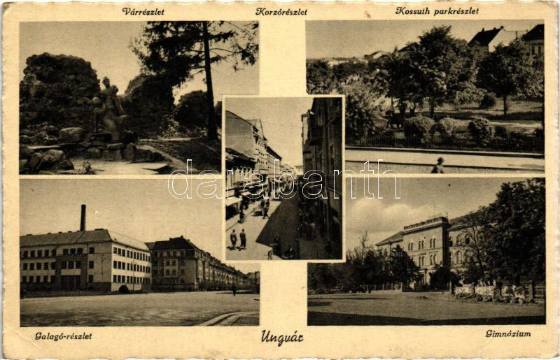 Ungvár, vár, Galagó, Gimnázium, Kossuth park, Korzó / castle, school, ... https://www.darabanth.com/hu/262-Gyorsarveres/262.0/Kepeslapok/Karpatalja~100033/Ungvar-var-Galago-Gimnazium-Kossuth-park-Korzo-castle-school-park-promenade-EK~II1020212