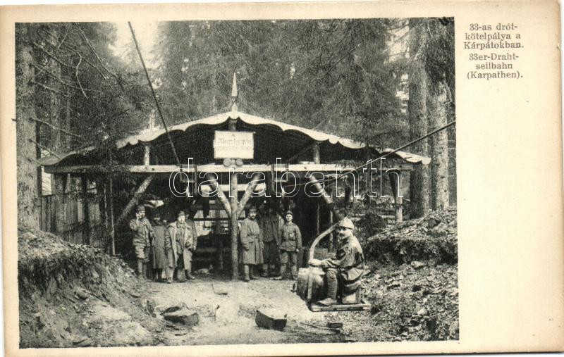 33-as drótkötélpálya a Kárpátokban; K.u.K. Inf-Reg. 33 rokkant alap se... https://www.darabanth.com/hu/262-Gyorsarveres/262.0/Kepeslapok/Katonai~400052/33-as-drotkotelpalya-a-Karpatokban-KuK-Inf-Reg-33-rokkant-alap-segelylap-WWI-KuK-mi~II1303558
