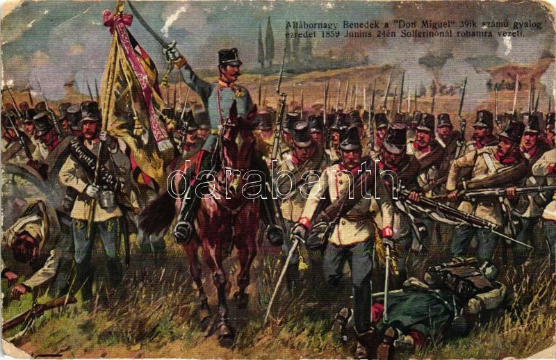 Altábornagy Benedek a "Don Miguel" 39ik számú gyalogezredet ... https://www.darabanth.com/hu/262-Gyorsarveres/262.0/Kepeslapok/Katonai~400052/Altabornagy-Benedek-a-Don-Miguel-39ik-szamu-gyalogezredet-rohamra-vezeti-Solferinonal-1859-ben~II1265436