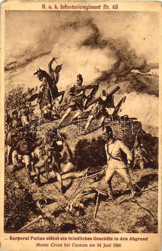 K.u.K. Infanterieregiment Nr. 63., Korporal Putian stürzt ein feindliches Geschütz in den Abgrund, Monte Crose bei Custozza am 1866 / K.u.K. military in 1866 (b)