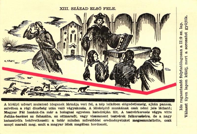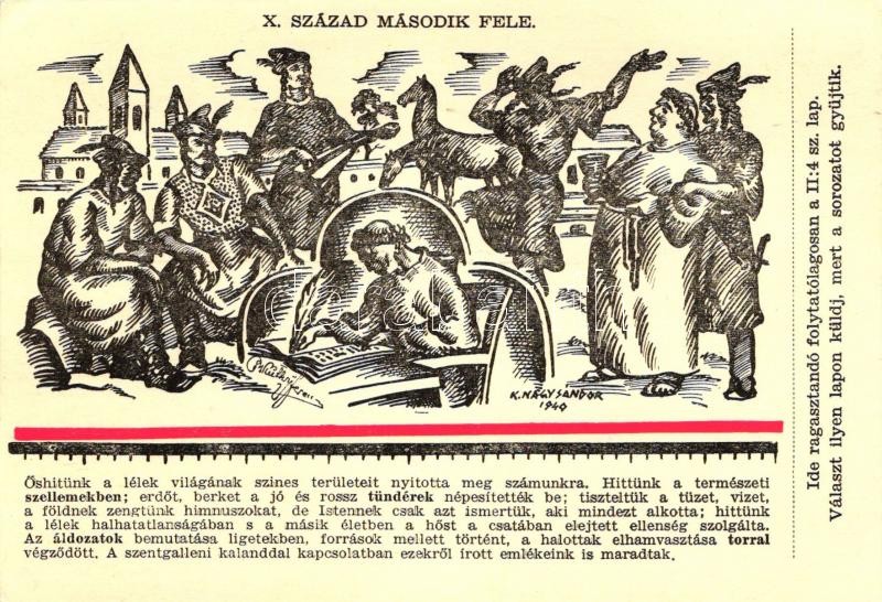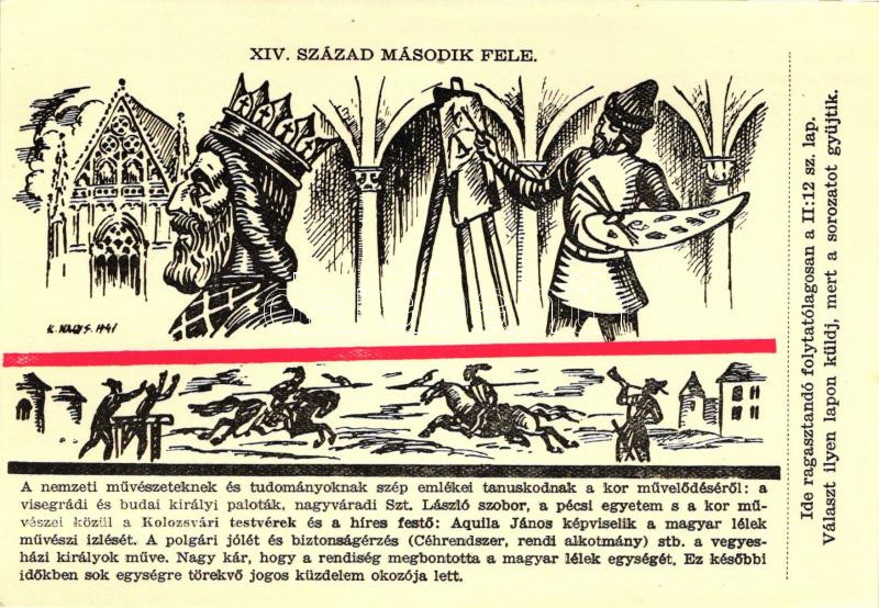 A magyar lélek ezeréves útja; A Magyar Sors - bajtársi levelezés II. sz. (művelődéstörténeti) sorozata. Szerk. Kuthy Ferenc. 22 darabos képeslapsorozat K. Nagy Sándor rajzaival; kiadja a Értelmiségi Munkavállalók Szövetkezete