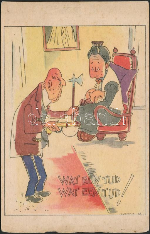 Holland második világháborús humoros grafikai képeslapfüzet 14 lappal, a német katona Werner Klemke rajzaival / Dutch WWII humorous graphic postcard album with 14 cards, Werner Klemke's drawings