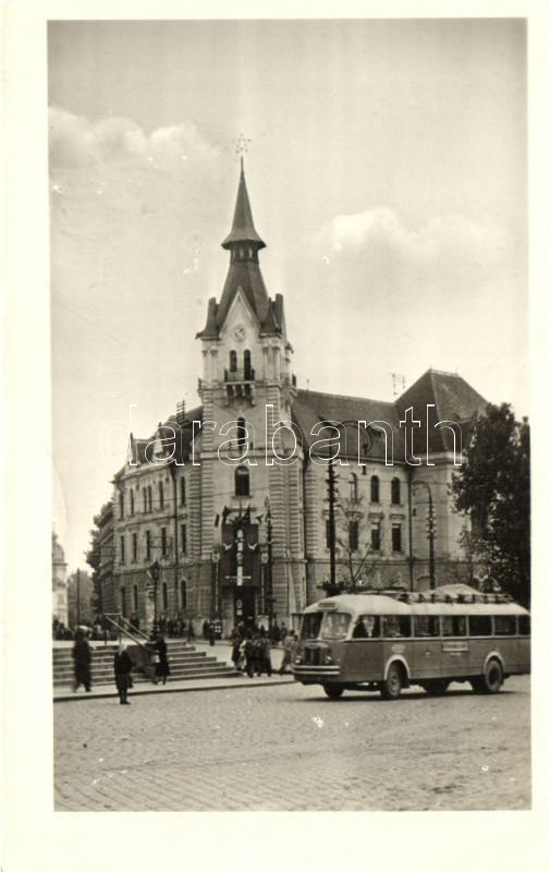 Leírás: 1961 Kaposvár, Városi tanácsháza, autóbusz; Művészeti Alkotások