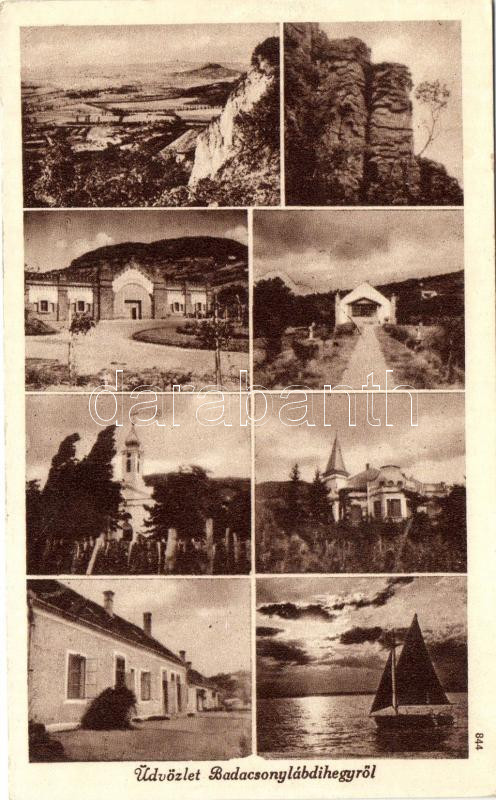Leírás: Badacsonylábdihegy, 8 képes mozaiklap, többek között az Állami borpincével