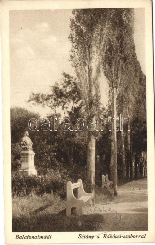 Balatonalmádi, Sétány a Rákóczi-szoborral https://www.darabanth.com/hu/262-Gyorsarveres/262.0/Kepeslapok/Magyarorszag~100023/Balatonalmadi-Setany-a-Rakoczi-szoborral~II1301962