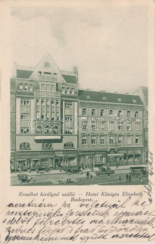 Budapest V. Erzsébet királyné szálló, automobiles (EK) https://www.darabanth.com/hu/262-Gyorsarveres/262.0/Kepeslapok/Magyarorszag~100023/Budapest-V-Erzsebet-kiralyne-szallo-automobiles-EK~II1017670
