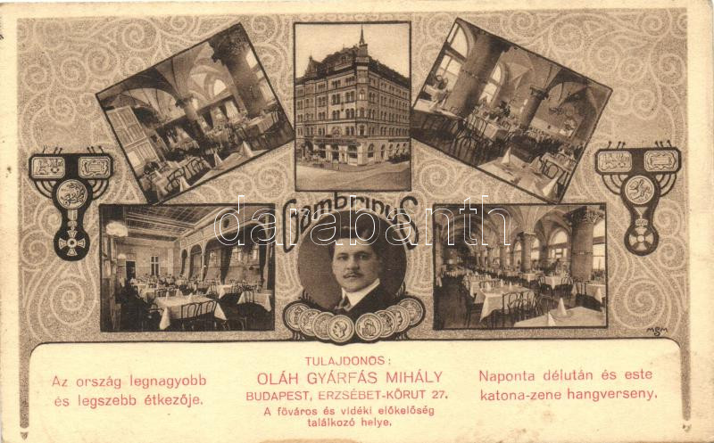 Budapest VII. Oláh Gyárfás Mihály Gambrinus Étterme, belső; Erzsébet k... https://www.darabanth.com/hu/262-Gyorsarveres/262.0/Kepeslapok/Magyarorszag~100023/Budapest-VII-Olah-Gyarfas-Mihaly-Gambrinus-Etterme-belso-Erzsebet-korut-27-Art-Nouveau~II1304227