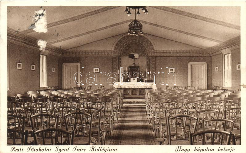 Budapest XI. Pesti Főiskolai Szent Imre Kollégium, Nagy Kápolna belső https://www.darabanth.com/hu/262-Gyorsarveres/262.0/Kepeslapok/Magyarorszag~100023/Budapest-XI-Pesti-Foiskolai-Szent-Imre-Kollegium-Nagy-Kapolna-belso~II1262684