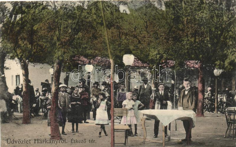 Leírás: Harkány, Étkező tér, kiadja Sonnenfeld Bernát (Rb)