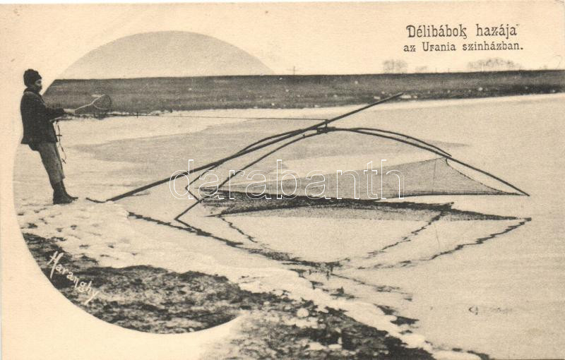 Leírás: Hortobágy, Délibábok hazája az Urania színházban, horgász télen; Haranghy felvétele