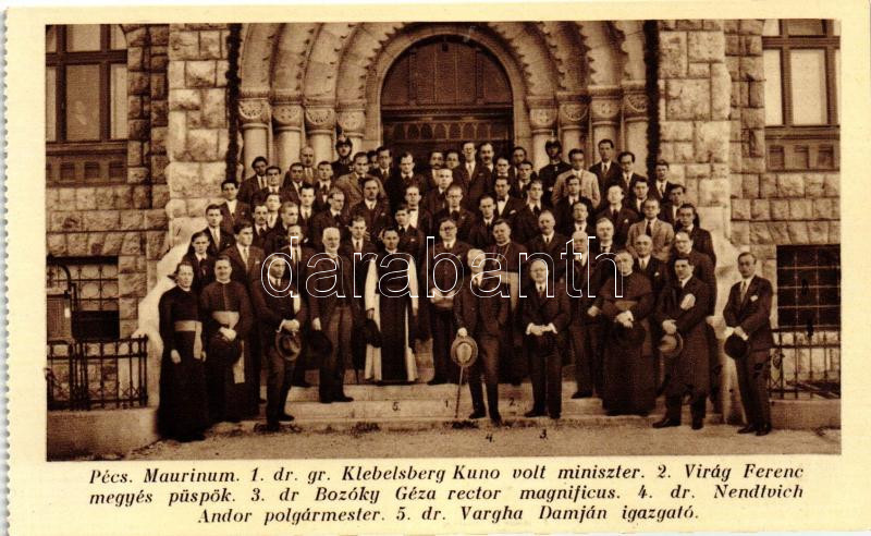 Leírás: Pécs, Marianum csoportkép; Klebelsberg Kunó, Virág Ferenc, Dr. Bozóky Géza, Dr. Nendtvich Andor, Dr. Vargha Damján