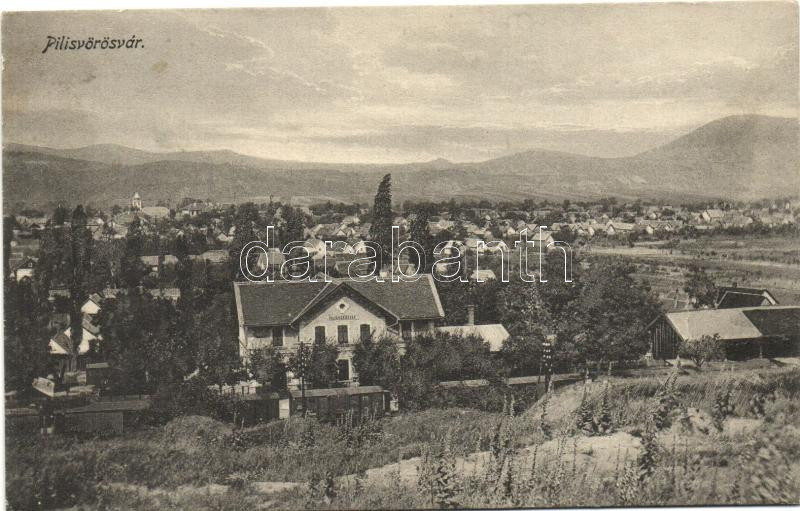 Leírás: Pilisvörösvár, látkép vasútállomással
