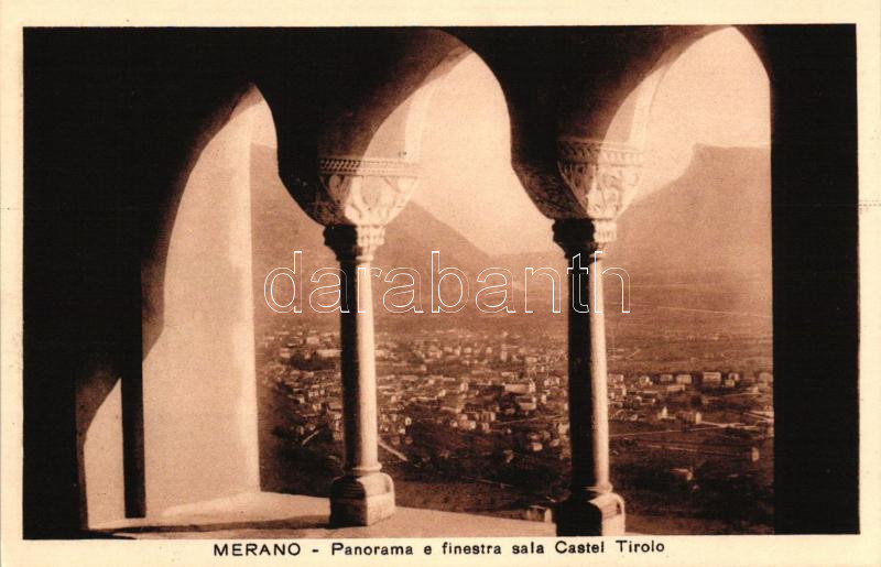 Merano, Meran; Panorama e finestra sala Castel Tirolo / panoramic view... https://www.darabanth.com/hu/262-Gyorsarveres/262.0/Kepeslapok/Olaszorszag~100050/Merano-Meran-Panorama-e-finestra-sala-Castel-Tirolo-panoramic-view-from-the-window-of-the-castle~II1266753