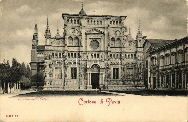 Leírás: Pavia, Certosa di Pavia, Facciata della Chiesa / Charterhouse of Pavia, front of the church (wet corners)