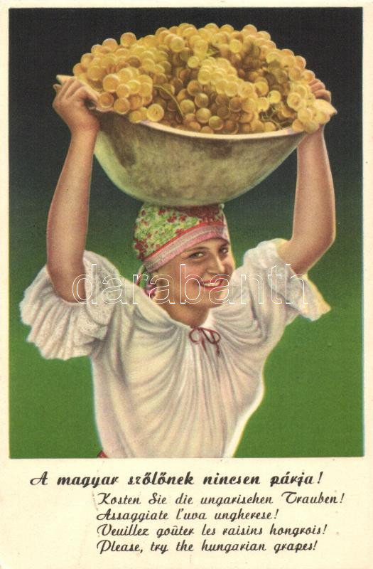 'A magyar szőlőnek nincsen párja', magyar szőlőreklám, folkl... https://www.darabanth.com/hu/262-Gyorsarveres/262.0/Kepeslapok/Propaganda-politika~100093/A-magyar-szolonek-nincsen-parja-magyar-szoloreklam-folklor-Hungarian-grape-advertisment~II1302695