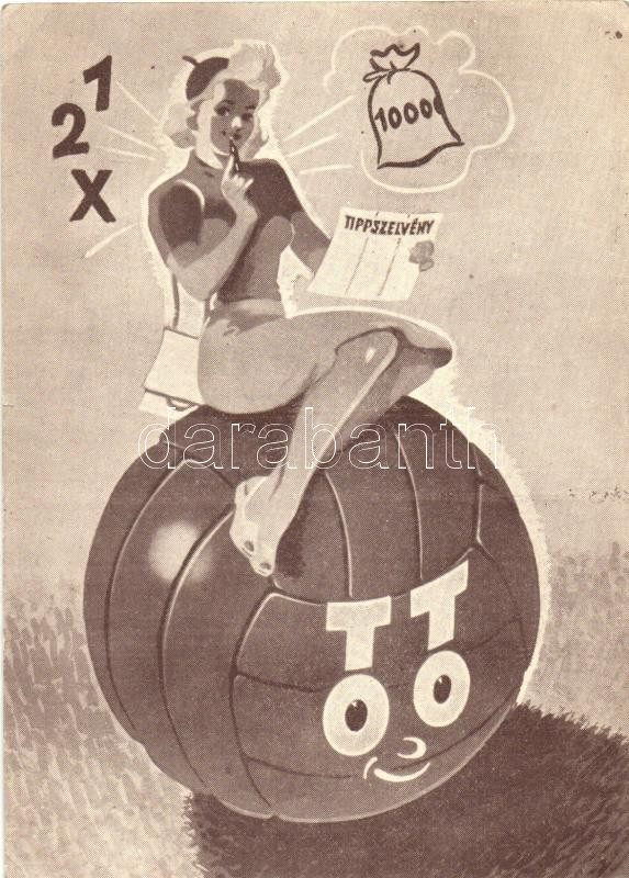 Totó hirdetés, kiadja a Kulcsár nyomda / Hungarian Football pool adver... https://www.darabanth.com/hu/262-Gyorsarveres/262.0/Kepeslapok/Reklam~100094/Toto-hirdetes-kiadja-a-Kulcsar-nyomda-Hungarian-Football-pool-advertisment-EK~II1260633