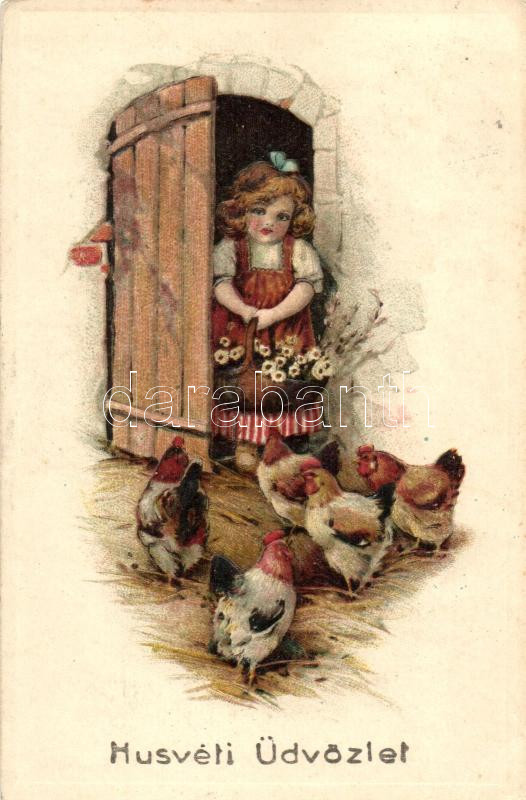 Easter, girl, chicken, Emb. litho m https://www.darabanth.com/hu/262-Gyorsarveres/262.0/Kepeslapok/Udvozlolapok-Unnepek~100103/Easter-girl-chicken-Emb-litho-m~II1302799