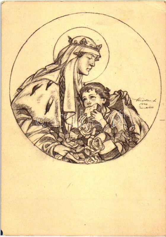Árpádházi Szent Erzsébet, Freskó karton a Dunakiliti-i templomhoz; Klö... https://www.darabanth.com/hu/262-Gyorsarveres/262.0/Kepeslapok/Uralkodo-Politikus~100102/Arpadhazi-Szent-Erzsebet-Fresko-karton-a-Dunakiliti-i-templomhoz-Klosz-Elizabeth-of-Hungar~II1270264