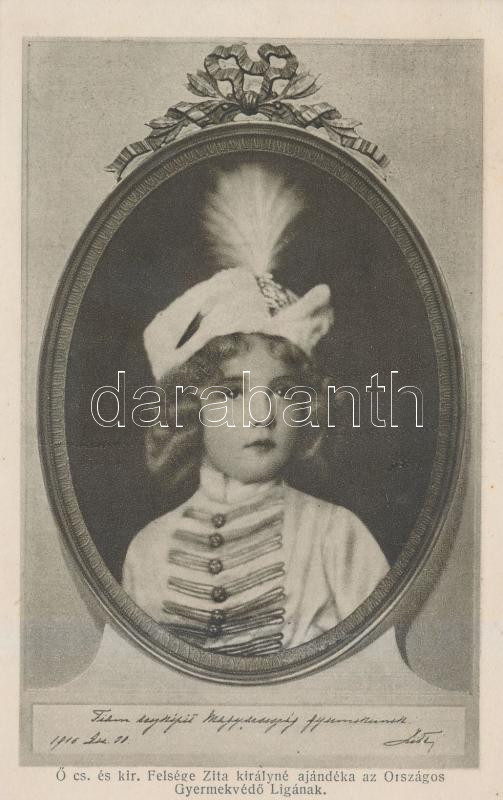 Otto, Zita királyné ajándéka az Országos Gyermekvédő Ligának https://www.darabanth.com/hu/262-Gyorsarveres/262.0/Kepeslapok/Uralkodo-Politikus~100102/Otto-Zita-kiralyne-ajandeka-az-Orszagos-Gyermekvedo-Liganak~II1068704