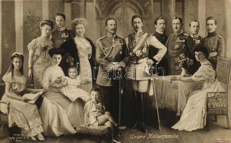 Unsere Kaiserfamilie / Wilhelm II, Kronprinz Wilhelm, Auguste Victoria https://www.darabanth.com/hu/262-Gyorsarveres/262.0/Kepeslapok/Uralkodo-Politikus~100102/Unsere-Kaiserfamilie-Wilhelm-II-Kronprinz-Wilhelm-Auguste-Victoria~II1300189