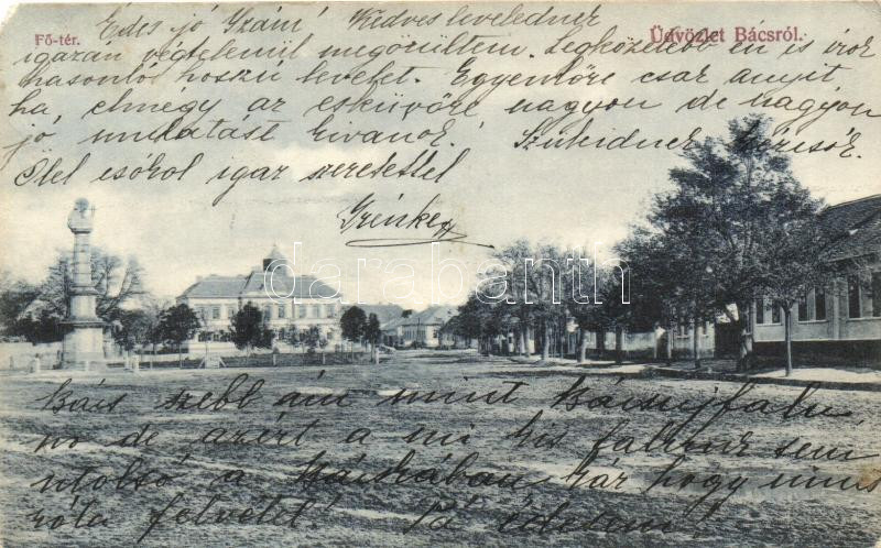Leírás: Bács, Bac; Fő tér, kiadja Topalits Imre / main square (EM)