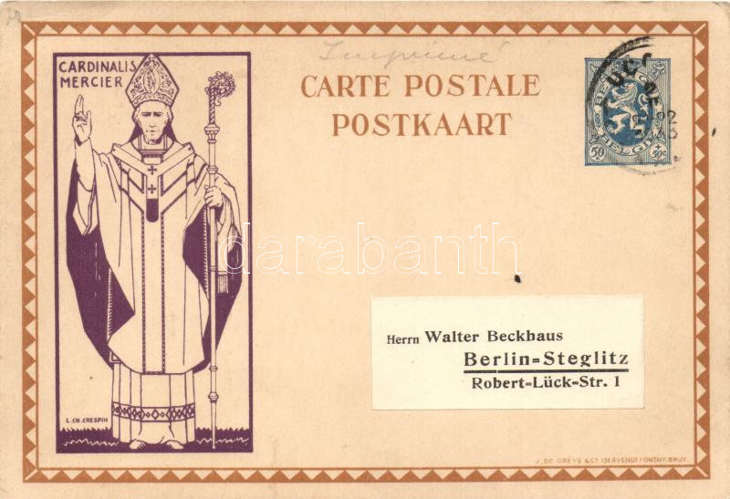 Cardinalis Mercier / Désiré-Joseph Mercier s: L. Ch. Crespin (EK) https://www.darabanth.com/hu/262-Gyorsarveres/262.0/Kepeslapok/Vallas~100105/Cardinalis-Mercier-Desire-Joseph-Mercier-s-L-Ch-Crespin-EK~II1282618
