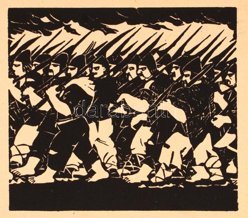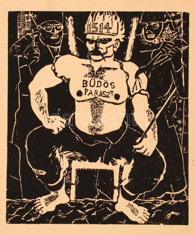 Derkovits, Gyula: 1514: une série de gravures sur bois. Bp., [1948], Szikra. 11 db fametszetről készült reprodukció, francia nyelvű bevezetővel, hiánytalan, papír mappában, jó állapotban.