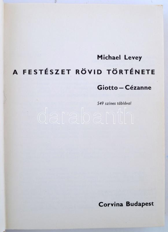 Michael Levey: A festészet rövid története. Giotto-Cézanne. Bp., 1962,... https://www.darabanth.com/hu/262-Gyorsarveres/262.0/Konyvek/Konyvek-Epiteszet-muveszet~32/Michael-Levey-A-festeszet-rovid-tortenete-Giotto-Cezanne-Bp-1962-Corvina-Kiadoi-vaszon~II1217847