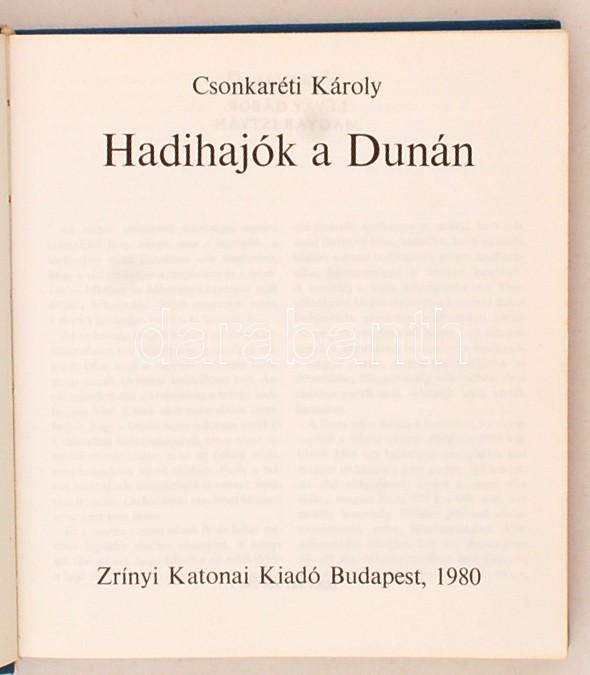 Csonkaréti Károly: Hadihajók a Dunán. Bp., 1980, Zrínyi. Kiadói egészv... https://www.darabanth.com/hu/262-Gyorsarveres/262.0/Konyvek/Konyvek-Militaria-katonasag~29/Csonkareti-Karoly-Hadihajok-a-Dunan-Bp-1980-Zrinyi-Kiadoi-egeszvaszon-kotesben-borC3~II1250021