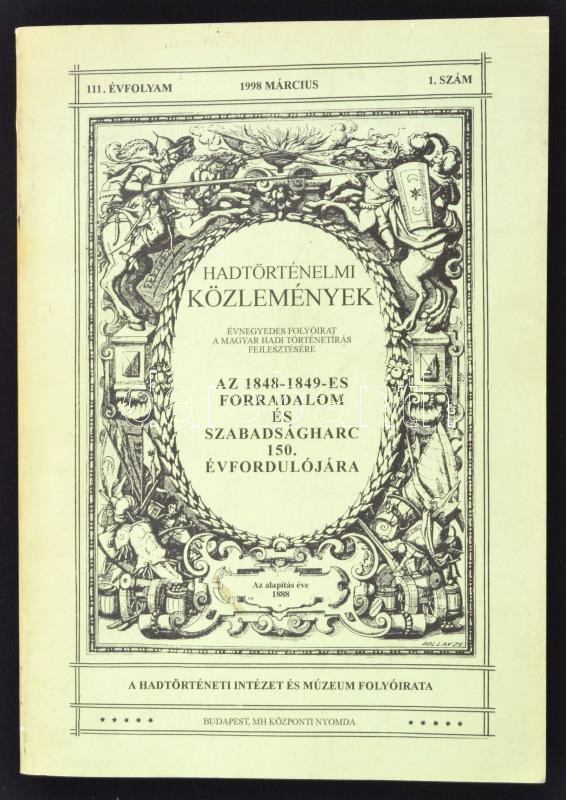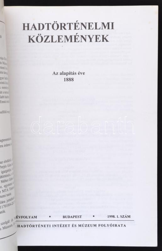 Hadtörténeti Közlemények. 111 évf. 1. szám. 1998 március. Bp., 1998, Z... https://www.darabanth.com/hu/262-Gyorsarveres/262.0/Konyvek/Konyvek-Militaria-katonasag~29/Hadtorteneti-Kozlemenyek-111-evf-1-szam-1998-marcius-Bp-1998-Zrinyi-305-p-Kiadoi-~II1253154