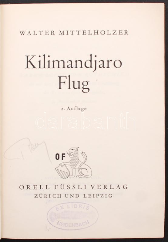 Mittelholzer, W.: Kilimandjaro Flug. Zürich, 1930. Lpz, Orell Füssli. https://www.darabanth.com/hu/262-Gyorsarveres/262.0/Konyvek/Konyvek-Teli-sport-es-hegymaszas~23/Mittelholzer-W-Kilimandjaro-Flug-Zurich-1930-Lpz-Orell-Fussli~II1284429