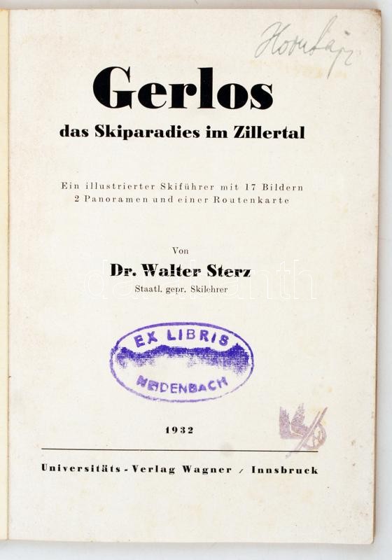 Walter Sterz: Gerlos, das Skiparadies im Zillertal (1932) Ein illustrierter Skiführer mit 17 Bildern, 2 Panoramen u. 1 Routenkarte. Innsbruck, 1932. Univ. Verl.