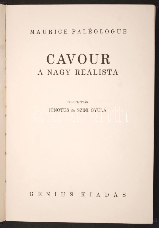 Maurice Paléologue: Cavour a nagy realista. Bp., é.n., Genius. Kiadói... https://www.darabanth.com/hu/262-Gyorsarveres/262.0/Konyvek/Konyvek-Tortenelem~27/Maurice-Paleologue-Cavour-a-nagy-realista-Bp-en-Genius-Kiadoi-kisse-kopottas-aranyozot~II1234252