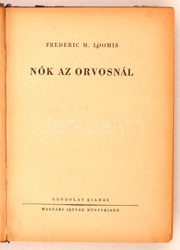 Frederic M. Loomis: Nők az orvosnál. Bp., 1944, Gondolat kiadás (Magya... https://www.darabanth.com/hu/262-Gyorsarveres/262.0/Konyvek/Konyvek-Tudomany-es-technika~35/Frederic-M-Loomis-Nok-az-orvosnal-Bp-1944-Gondolat-kiadas-Magyary-Istvan-konyvkiado-2~II1216892