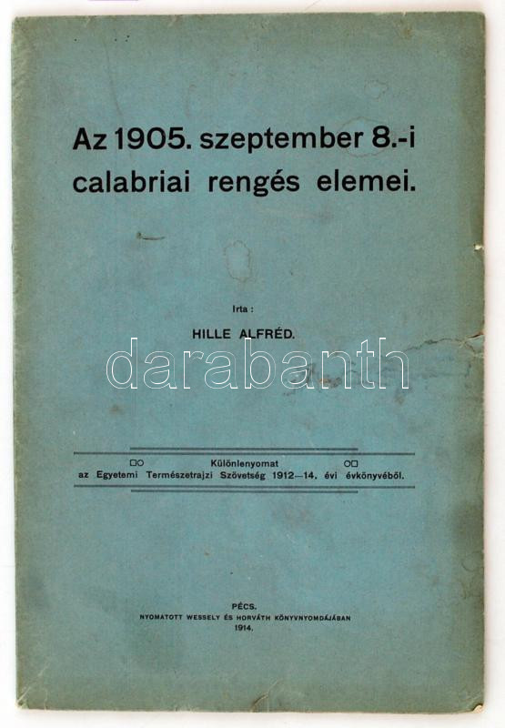 Hille Alfréd: Az 1905. szeptemberi calabriai rengés elemei. Pécs, 1914... https://www.darabanth.com/hu/262-Gyorsarveres/262.0/Konyvek/Konyvek-Utazas-varosok~22/Hille-Alfred-Az-1905-szeptemberi-calabriai-renges-elemei-Pecs-1914-Wessely-es-Horvath-26p~II1143796