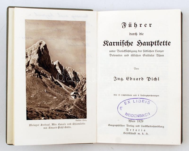 Ing. Eduard Pichl: Führer durch die Karnische Haupstette. Wien, 1929, ... https://www.darabanth.com/hu/262-Gyorsarveres/262.0/Konyvek/Konyvek-Utazas-varosok~22/Ing-Eduard-Pichl-Fuhrer-durch-die-Karnische-Haupstette-Wien-1929-Artaria-Kiadoi-egeszvaszo~II1284324