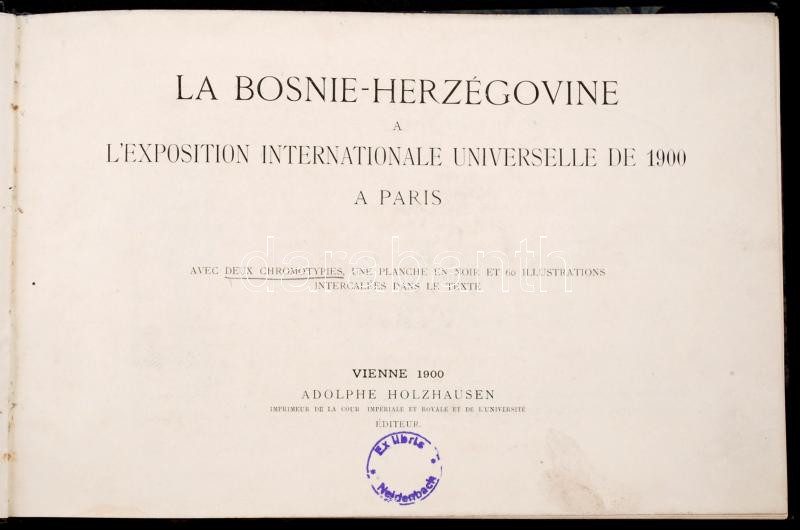 La Bosnie-Herzégovine a l'exposition internationale universelle de 1900 a Paris. Bécs, 1900, Adolphe Holzhausen. Rengeteg érdekes illusztrációval. Kicsit kopott félvászon kötésben, egyébként jó állapotban. /