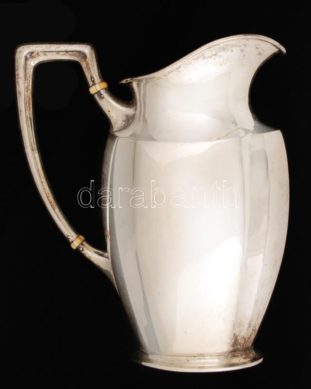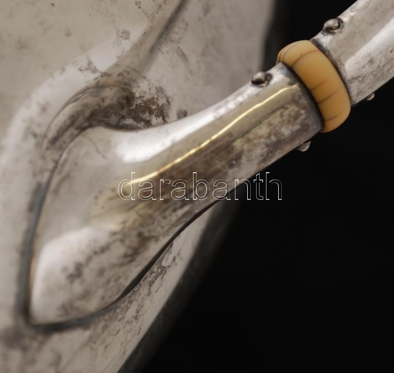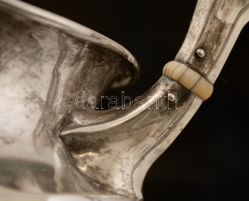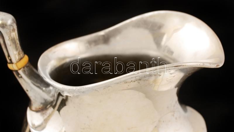Leírás: Ezüst (Ag.) kiöntő elefáncsont gyűrűkkel, apró horpadással, jelzett, m:19,5 cm, nettó:416 g