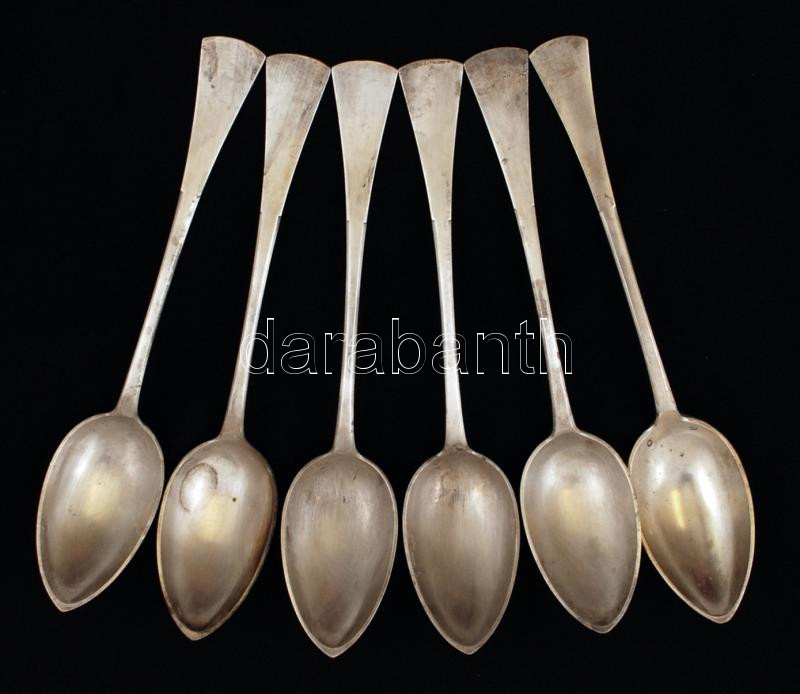 Leírás: Ezüst (Ag.) leveses kanál (6db), monogrammal, jelzett, mesterjeggyel, h:21 cm, nettó: 464 g