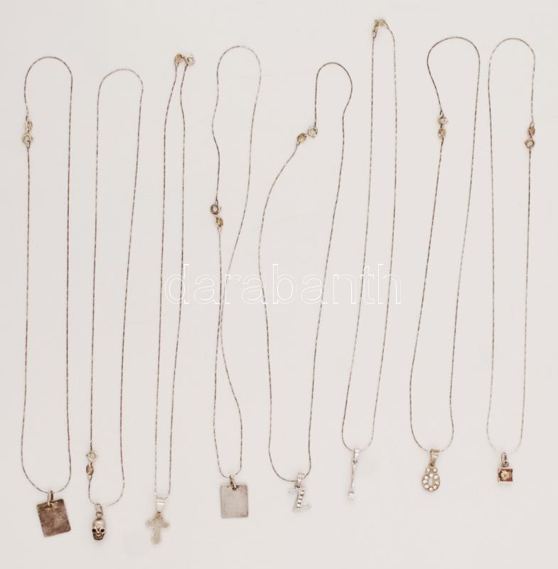 Leírás: Ezüst(Ag) nyakláncok apró ezüst(Ag) medálokkal, jelzett, 8 db, br: 16,6 g
