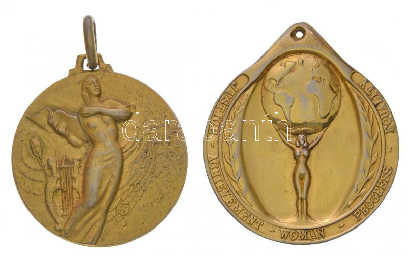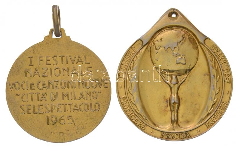 Olaszország 1965. "Nemzeti Hang és Dal Fesztivál - Milánó" jelzett aranyozott Ag érem füllel (11,08g/0.800/30mm) + DN "Igazság - Teljesítmény - Nő - Haladás - Egyenlőség" jelzett aranyozott Ag érem (25,44g/0.999/33x39mm) T:2