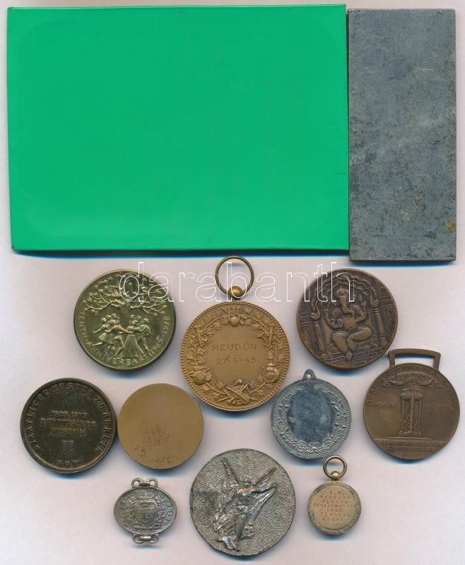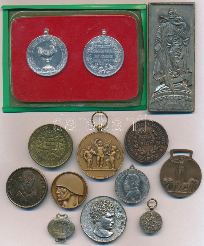 Leírás: 13db-os vegyes külföldi emlékérem, plakett, replika tétel, közte Olaszország 1918. "Olasz Szövetséges Győzelmi Érem" Br emlékérem (36mm) T:vegyes