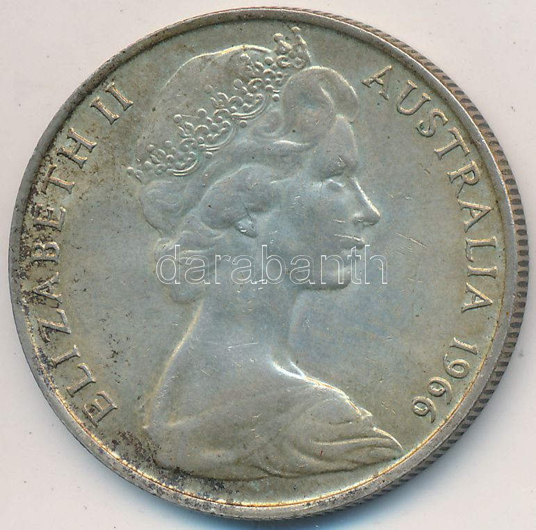 Australia 1966. ... https://www.darabanth.com/hu/262-Gyorsarveres/262.0/Numizmatika/Kulfoldi-fem-es-ezustpenzek~200017/Ausztralia-1966-50c-Ag-II-Erzsebet-T2--Australia-1966-50-Cents-Ag-Elizabeth-II-CXF~II1279579